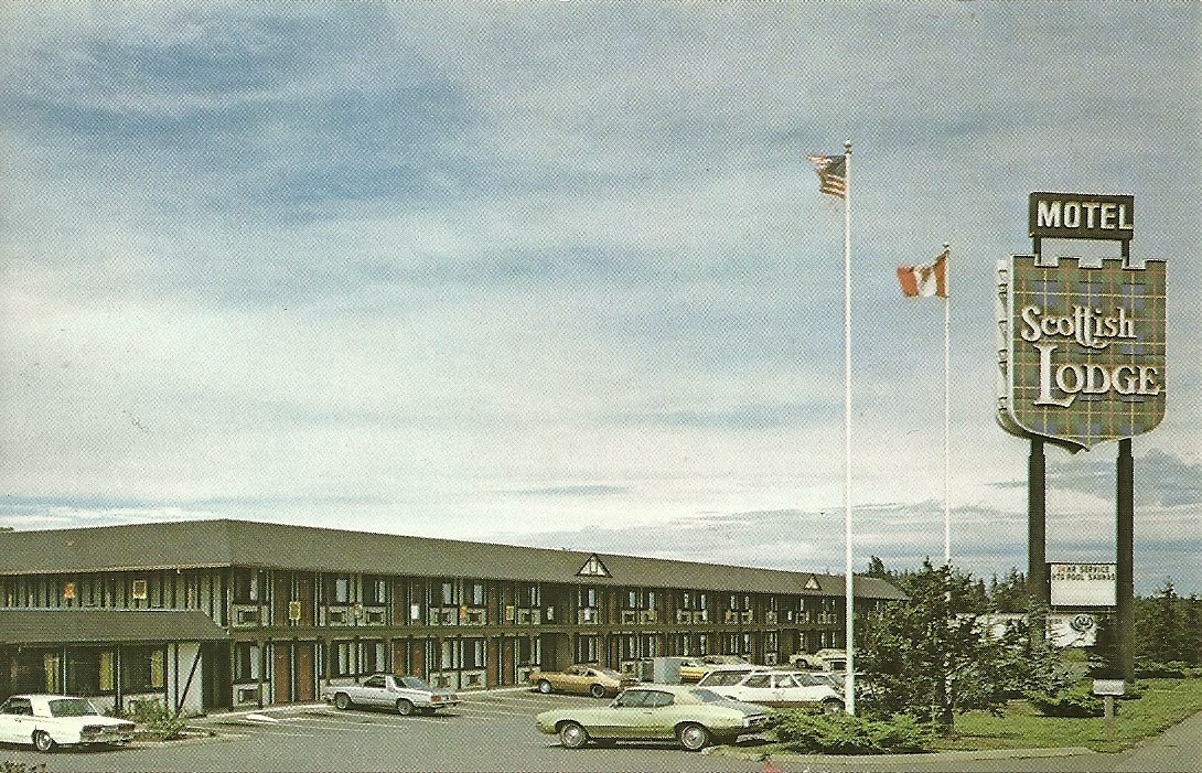 Near Bellingham, Washington, Scottish Lodge 1970’s 94 Deluxe Units. Queen size beds. Color Cable TV. Saunas. Heated Pool. Complementary Coffee. Free County Telephone.