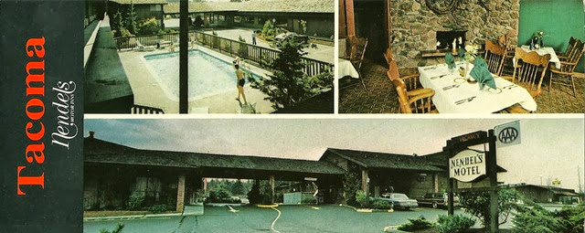 Nendels Motor Inn, Tacoma, Washington 1980’s. 155 person conference room. Restaurant. Lounge. Comfortable accommodations.