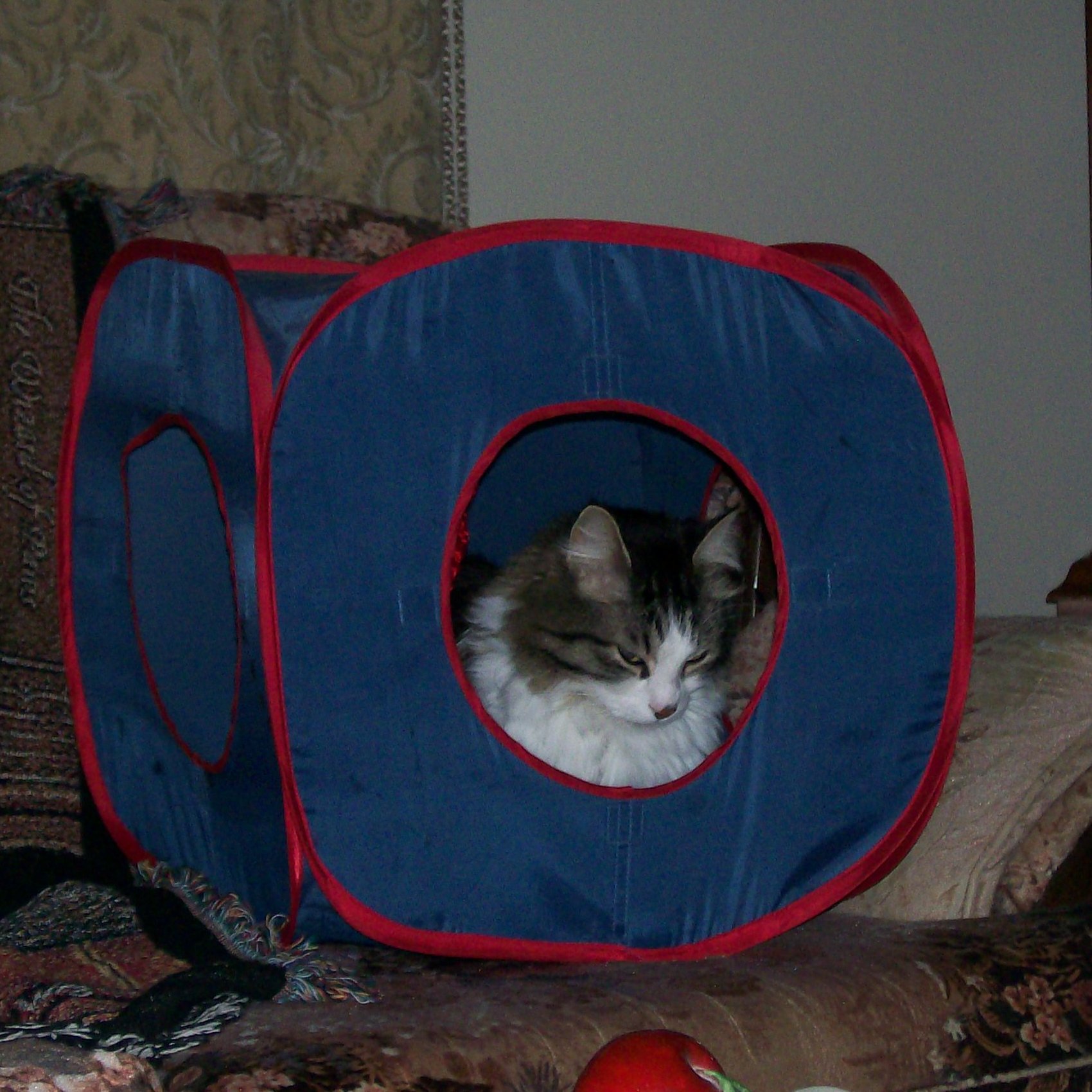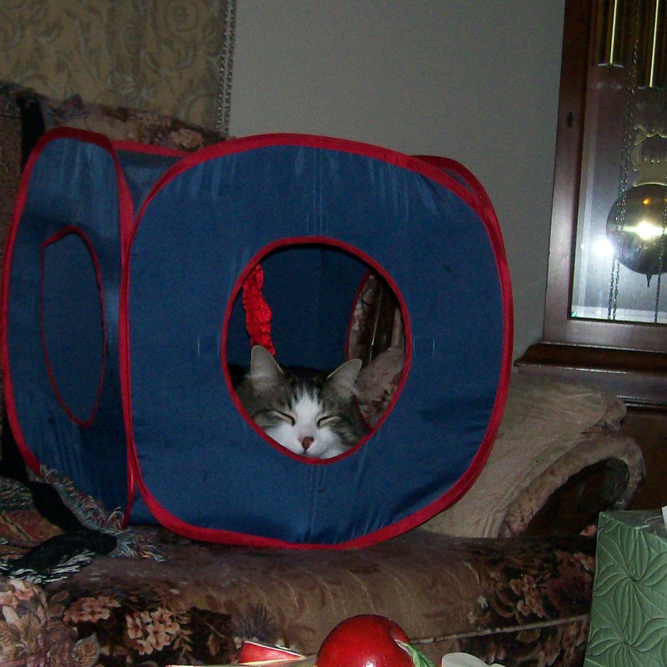 Santa Cat brought me a new tent! It is a bit smaller than the blue one above. I sleep in it upstairs. Only room for me in here! See you on the other side. Remember Blog Pause in January!