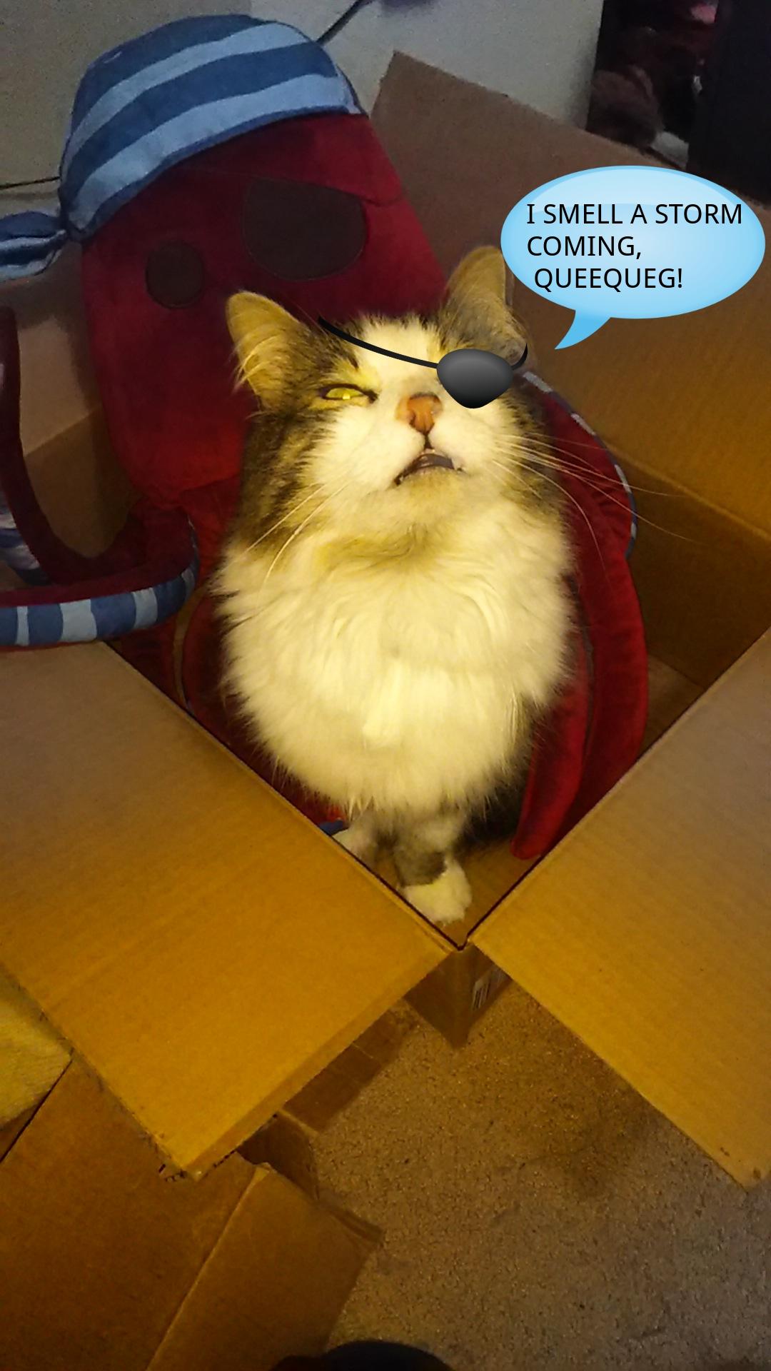 April 18, 2015October 2, 2015 by greg-in-washington Zeke the pirate Cats, Zeke cat, Zeke 1 Comment This box is my pirate ship! This is my 1st mate I smell a storm coming! Hold on tight! Aye Aye Captain! pagesource Like Loading...