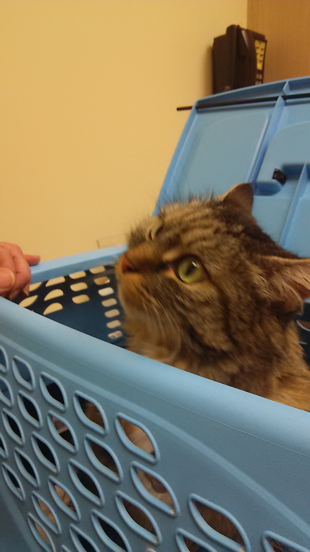 There’s a certain look a cat gets at the vets office. You captured it well 🙂