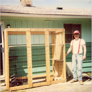 From what I can guess, I built the catio which was then called the cat-run back about 2001. I don’t think the word “catio” existed then. “Cat-run was the term used.