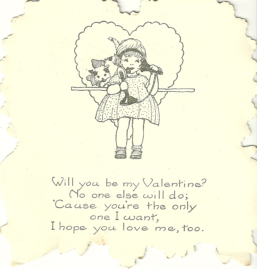 At the urging of the Tabbies o Trout Towne I decided to repost my father’s valentines which he had saved. After he died I found a large collection of cards in a box he saved as a child from different holidays. Valentines were the most numerous by far. These run from 1917 to 1928 but most are from the early 1920’s. In other words 100 years old plus or minus a few years. None have envelopes. Some are postcards like the very last one, some are three D foldouts, some are cutouts which were never cut out. Some were just “ordinary”. The black and white ones are examples of what is to be found inside some of them when opened. I knew some of the relatives family friends whose names are on the cards when I was young. Some of the other valentines may be the only artifacts left behind on earth to show someone lived. If you haven’t seen them I hope you enjoy them. I looked up valentines on the web and did not see any of these but what I did see had little monetary value. Over 90 images are shown below, plus Dad on the family farm. He was the youngest of three brothers and got the hand-me-downs.
