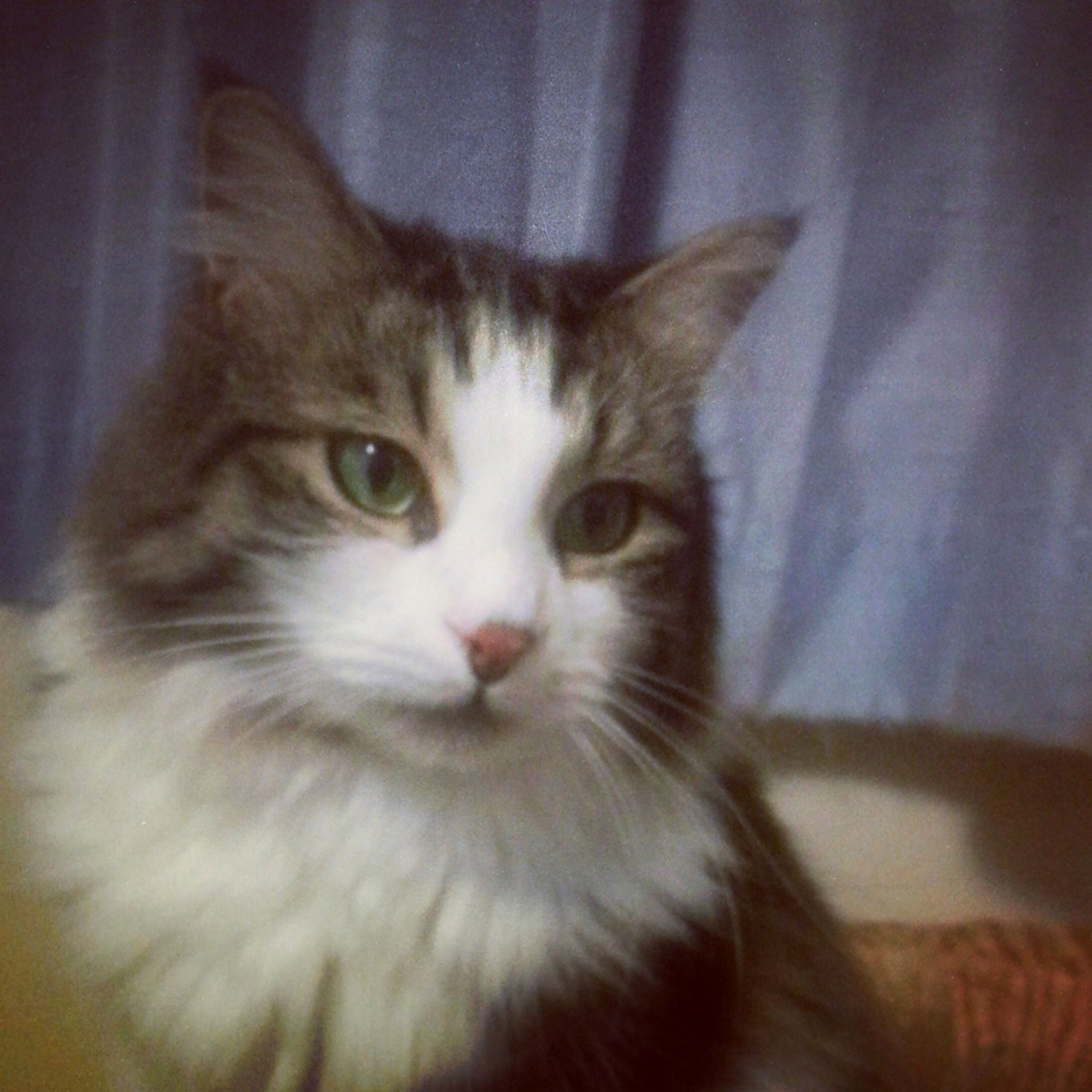 Brought home to be a companion to Zeke; who unexpectedly died 10 days before Nicholas arrival. I decided to keep him, as people at the shelter didn’t want him because most of his tail was missing for some unknown reason. He is a shorthair black male tabby. Named after St. Nicholas. He was a joy to have around and full of energy. He was very vocal. He loved chasing small balls thrown down the stairs. He got along well with OPIE.